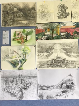 Dessins au crayon, de beaux projets de jardin,